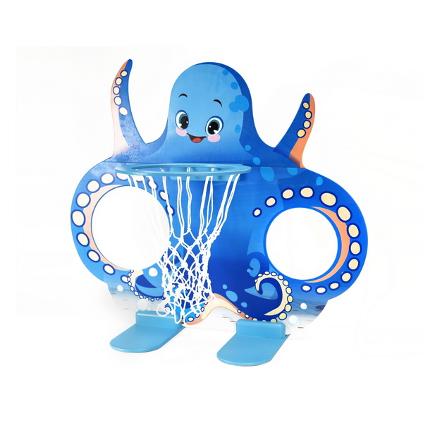 Это набор для начинающих маленьких спортсменов. В одной игрушке объединены кольцеброс, детская стойка с корзиной для мяча и отверстиями разного диаметра для метания мячей.