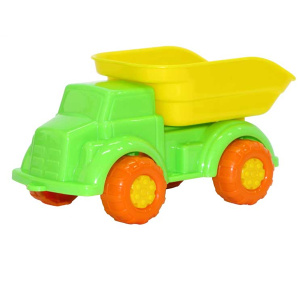 Красивый и компактный самосвал с откидным кузовом. На нем можно возить песок, камни, палочки.