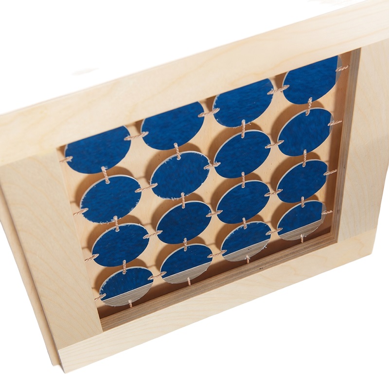 На фронтальной части модели закреплены 16 небольших круглых зеркал. Рассматривая отражения и фокусируя зрение, малыши активно тренируют зрительное восприятие.