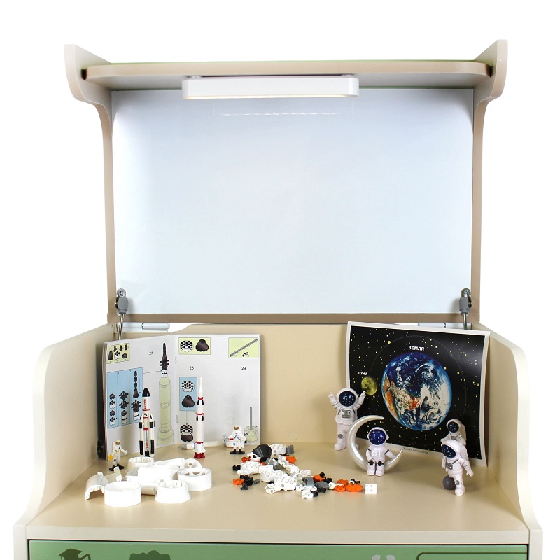 - Материалы: ЛДСП 16 мм; кромка ПВХ 0,4-2 мм; подъемник газовый; карточные петли; поворотные колёса cо стопорами, прозрачные; направляющие шариковые полного выдвижения, магнитно-маркерное полотно.