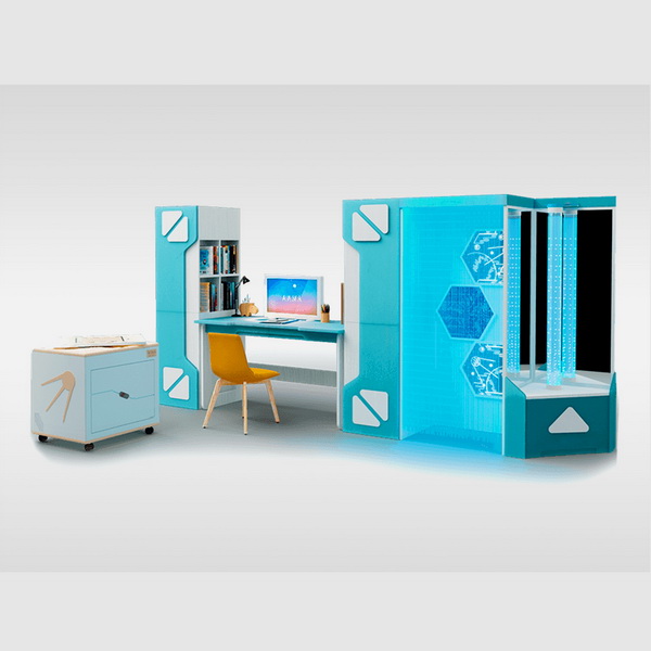 Комплекс включает встроенную световую песочницу, место под конструирование с мягким магнитным конструктором «МАККИ 37», место психологической разгрузки с фиброоптическим душем и воздушно-пузырьковой колонной, встроенную музыкальную систему и многое другое.