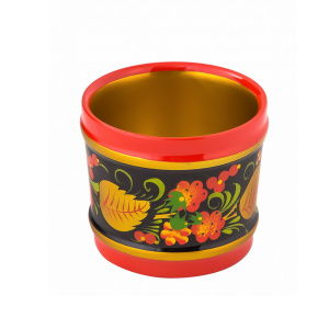 Размер изделия 60х70х70 мм. Изготовлен в полном соответствии с традиционной хохломской технологией золочения. Выточен из цельного дерева вручную. Имеет авторскую роспись в технике фонового письма. Роспись «Малина».