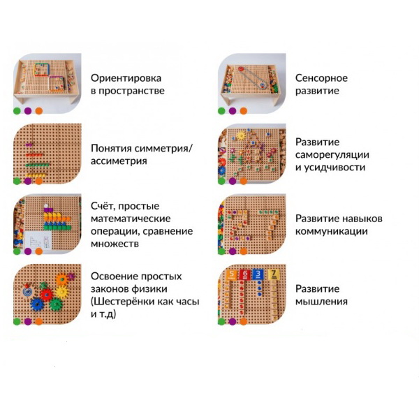 - колышки геометрической формы - 64 элемента (4 формы 8 цветов);