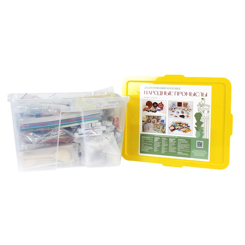 Характеристики, комплектация и цветовая гамма товара могут быть изменены производителем в зависимости от серии поставки без предварительного уведомления. Дидактический комплект Народные промыслы России поставляется в контейнере с крышкой.