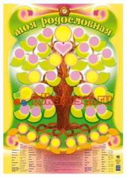 Плакат «Моя родословная» поможет родителям вместе с ребенком собрать данные о ближайших родственниках и создать дерево своего рода. Формат: 600х900mm. Производитель: Россия.