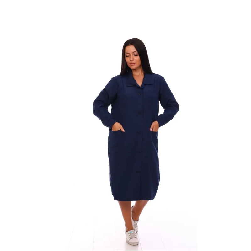 Халат для уборщицы произведен из устойчивой к истиранию смесовой ткани «Грета» в ее составе 80% полиэстера и 20% хлопка. Размеры в ассортименте.