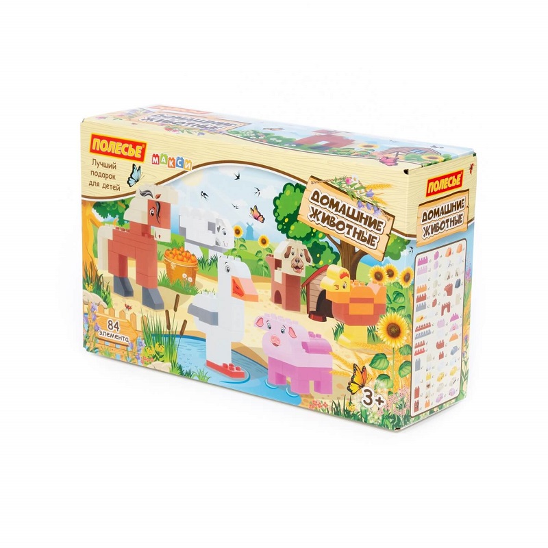Конструктор "Макси" - "Домашние животные" познакомит малыша с увлекательным миром домашних животных, позволяя придумывать различные игровые сценарии. В набор входит 84 элемента конструктора.