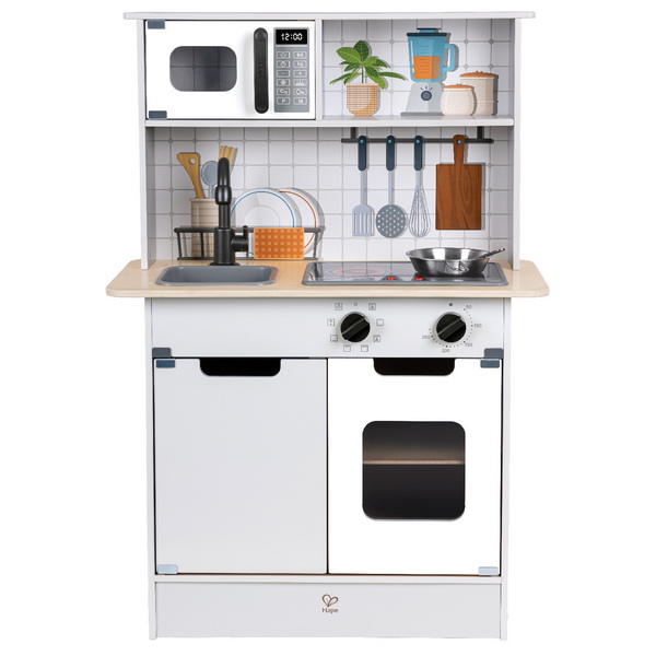 На полках за закрытыми дверцами удобно хранить посудку, поварскую утварь и любые другие игрушки и принадлежности. Маленькая хозяюшка будет с удовольствием готовить вкусную "еду", возиться с кукольными обедами и устраивать званые ужины для мишек и куколок.