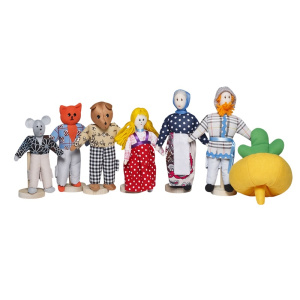 В комплекте: дед, бабка, внучка, Жучка, кошка, мышка, репка.