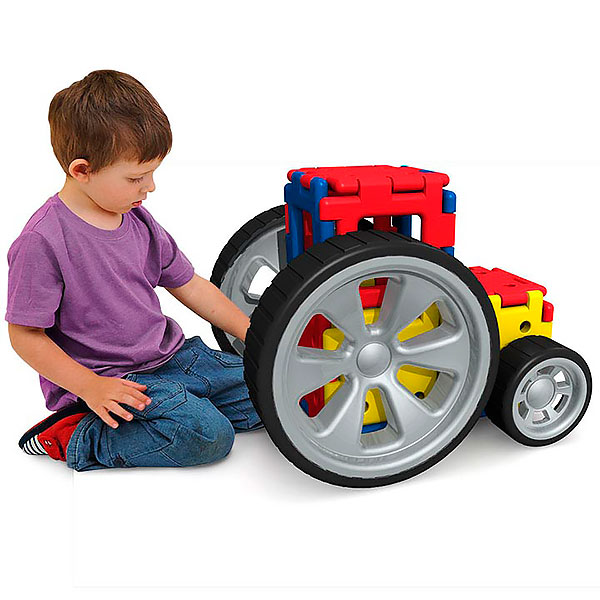Используя этот набор, дети смогут построить большое количество разнообразных движущихся моделей (автомобиль, трактор, автобус и т.д.), которые продемонстрируют работу простейшего механизма, помогут развивать координацию и осваивать понятия движения и скорости.